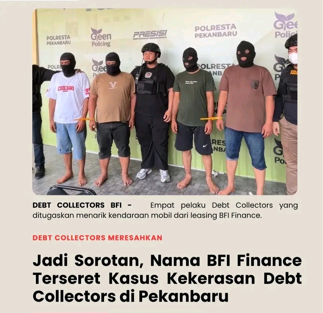 Pekanbaru – Nama perusahaan pembiayaan BFI Finance menjadi sorotan setelah diduga berkaitan dengan aksi sejumlah debt collector (DC) yang berujung kekerasan terhadap warga di Kota Pekanbaru. Kasus ini kini telah ditangani oleh Satreskrim Polresta Pekanbaru dan masuk ranah pidana.