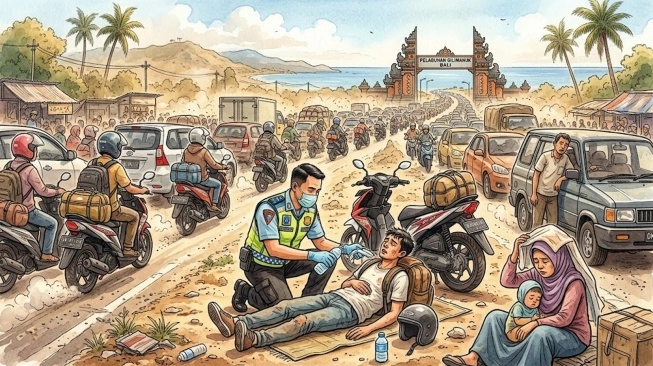 Bali – Arus mudik di kawasan Pelabuhan Gilimanuk berubah menjadi situasi darurat setelah antrean kendaraan mengular hingga puluhan kilometer dan membuat ribuan pemudik terjebak berjam-jam di bawah panas terik.